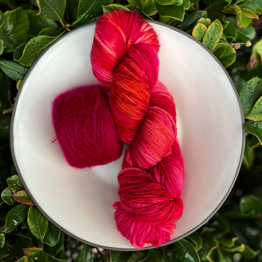 KIT: Paris Colored Hand-Dyed Merino Wool and Baby Suri Alpaca/Silk. This Baby Suri is dyed with Cochineal, Dactylopius coccus. One 100g skein 100%...