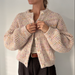The sleeves are picked up around the armholes and knitted in the round. All edges feature half-twisted rib, with a neat Italian bind-off for a flexible finish. A double-knit button band is worked along both fronts, while the neckline is completed with twisted rib, folded to the inside and secured for a clean, polished look.