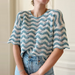 The Jean Tee pattern creates a light and stylish summer tee with a relaxed, boxy fit, round neckline, and striking wave-lace design. The slightly oversized silhouette includes positive ease and a modern, cropped length. Worked in two contrasting colors, the lace pattern is the highlight of the design.
