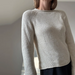 The blouse is knitted seamlessly from the top down. You begin at the neckline, shaping it with German Short Rows for a comfortable fit. The yoke is worked in the round with raglan increases and decorative ribbing, which naturally shapes the shoulders. Once the yoke is complete, stitches are separated for body and sleeves. Both are knitted in the round, with the ribbing continuing along the body and gradually shifting forward through a series of increases and decreases—creating a refined, elegant detail. The sleeves are finished last, completing this timeless wardrobe staple.