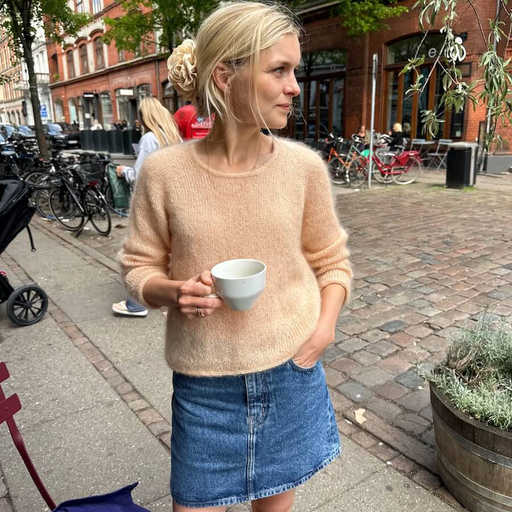 THIS IS A PRINTED PATTERN. The Cumulus Blouse O-neck is worked from the top down in stockinette stitch with two strands of thin mohair/silk yarn he...