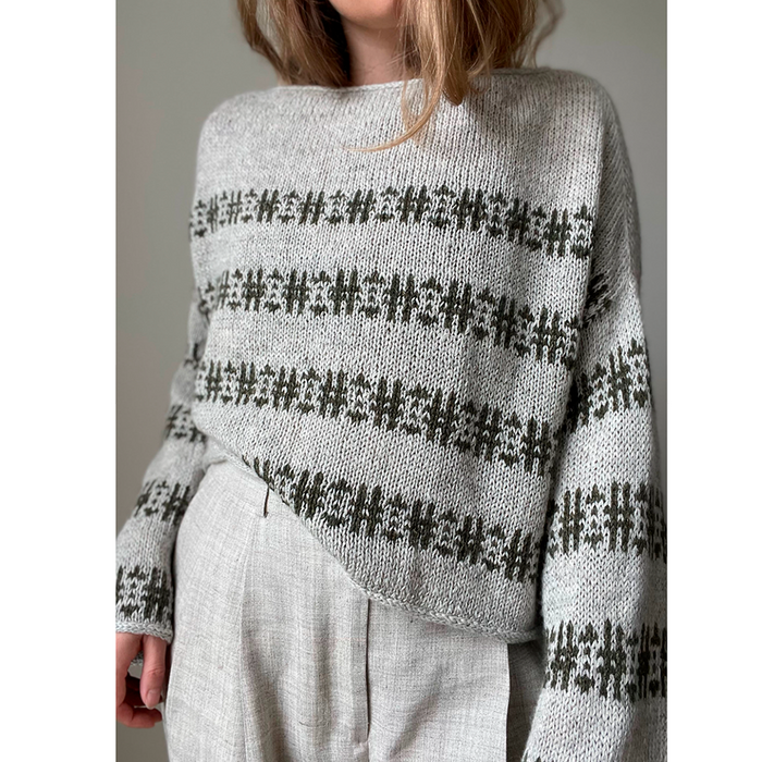 Seoul Blouse is a soft, drapey and timeless addition to your wardrobe. It has a classic boat neck with increases on the shoulder for a dropped shoulder effect and a feminine look. Instead of the classic stripes, the horizontal pattern repeat in a contrasting colour is inspired by Korean script.