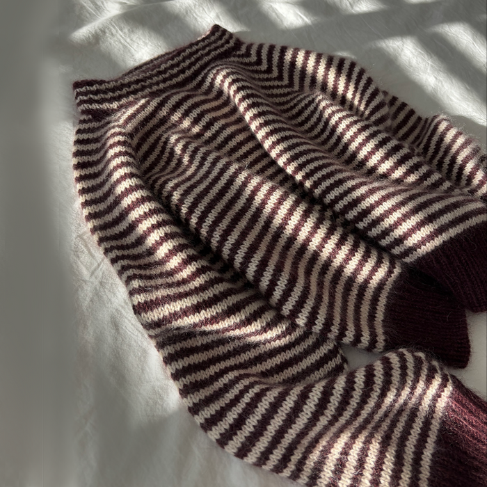 Normandy Sweater is a striped pullover with a timeless raglan construction and subtle broken rib detailing. The silhouette features a slightly cropped body, which you can easily modify to achieve your desired length.